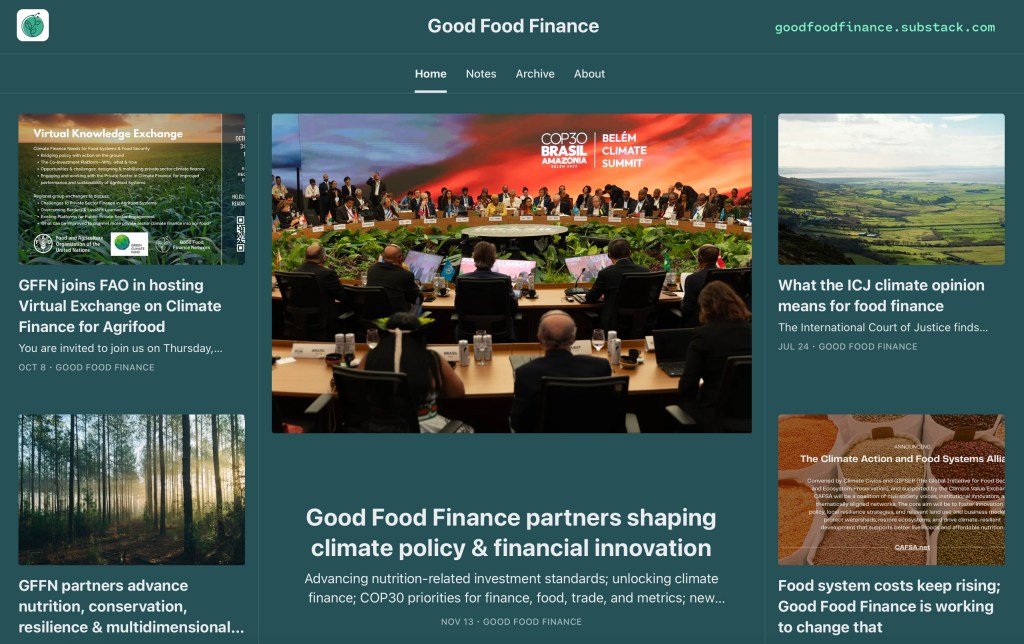 - Follow Good Food Finance links to the Climate Value Exchange and related work on international financial reform, sustainable food security initiatives, and climate-smart trade, alongside major multilateral convenings.