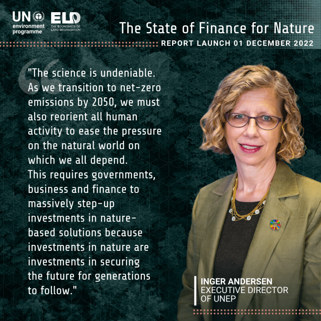 The State of Finance for Nature report has been produced by GFFN Partner – UN Environment Programme, and the Economics of Land Degradation (ELD) Initiative – hosted by the Deutsche Gesellschaft für Internationale Zusammenarbeit (GIZ) – in collaboration with Vivid Economics by McKinsey.