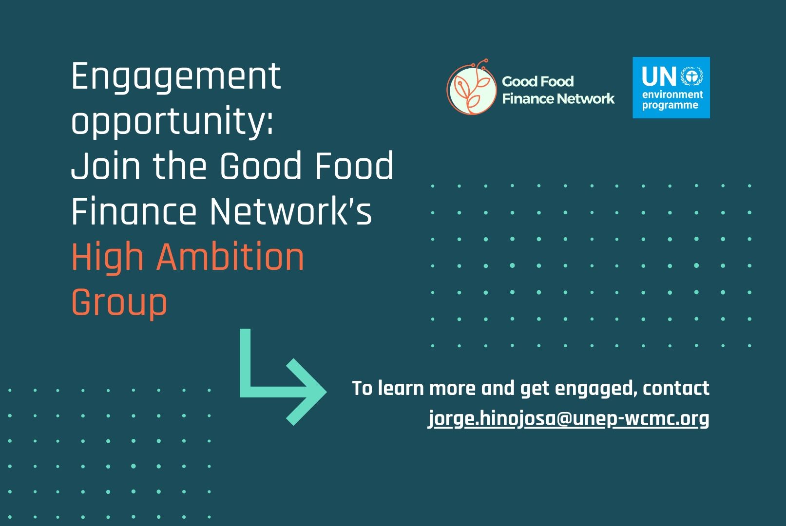 - New UNEP Report Outlines Steps to Mobilize Good Food Finance, Highlighting Exemplary Targets – The report outlines a roadmap for financiers to drive significant capital flows towards sustainable food systems, identifies pillars to develop an enabling policy environment, and highlights good practices demonstrated and promoted by the GFFN’s High Ambition Group.